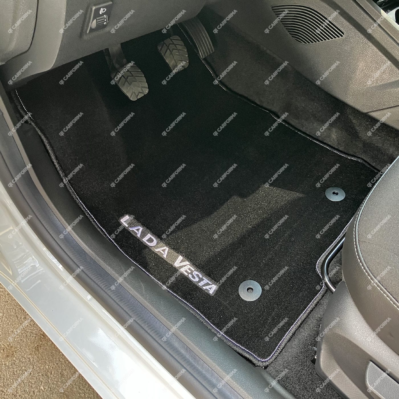 Все автомобильные коврики для Lada (ВАЗ) Vesta рестайлинг (2022 - 2025) от CARFORMA в Сургуте (Ханты-Мансийский авт. округ) изготавливаются из EVA-материала по оригинальным лекалам, благодаря чему полностью повторяют форму салона, все заводские выступы и вырезы напольного покрытия автомобиля. Коврики фиксируются на полу при помощи специальных клипс и остаются на месте даже при очень быстрой езде.