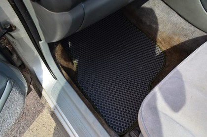 Автоковрики ЕВА не впитывают, а удерживают грязь в ячейках. Вода не катается по полу, как в резиновых половичках, однако, её все равно видно. ЕВА удобны тем, что их легко достать не пролив и вытряхнуть. Они дешевле.
