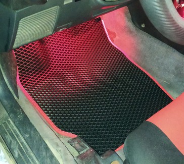 Автоковрики ЕВА не впитывают, а удерживают грязь в ячейках. Вода не катается по полу, как в резиновых половичках, однако, её все равно видно. ЕВА удобны тем, что их легко достать не пролив и вытряхнуть. Они дешевле.
