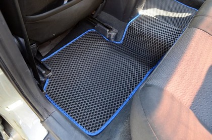 Автоковрики ЕВА не впитывают, а удерживают грязь в ячейках. Вода не катается по полу, как в резиновых половичках, однако, её все равно видно. ЕВА удобны тем, что их легко достать не пролив и вытряхнуть. Они дешевле.